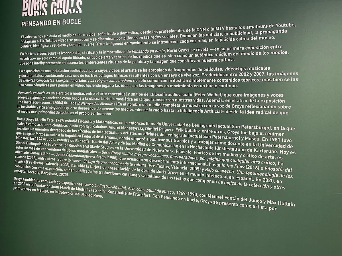 Do you know who Boris Groys is? Neither did I, until I went to the Colección del Museo Ruso in Málaga, aka the “Russian Museum.” The Russian Museum is not sponsored by the country or otherwise contaminated with political fuckery. Founded in 2015, it is housed in a former tobacco factory, and was essentially the Spanish wing of the Russian State Museum in St Petersburg until the invasion of Ukraine. A British collector of Russian art stepped in to revitalize it, and it depends on collectors in Spain and Europe for its future. Someone left a review on Tripadvisor that says “Don’t go, nothing to see waist of money only when it’s only 4 euros. Security is reticules do scan your bag Nothing else. So ….,”